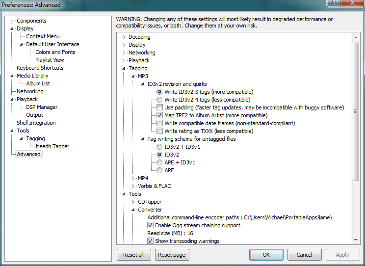 For completeness, here is a screenshot of all the mp3 tagging options that I used: