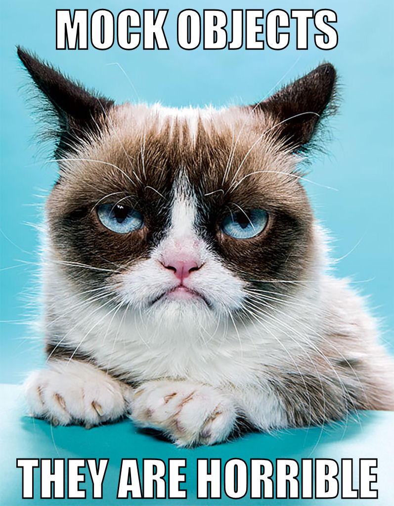 | Mandatory grumpy cat meme - "Mock objects - they are horrible" |