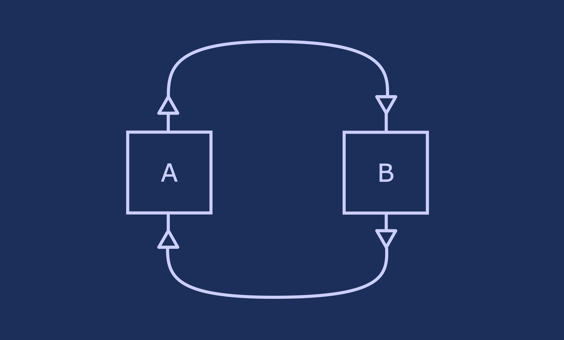The presence of a call cycle between components A and B might indicate that at least one of the two components violates the Single Responsibility Principle (SRP). In this case, one of the responsibilities can be extracted into a separate component which only exposes inputs, thus breaking the cycle, as the following figure illustrates: