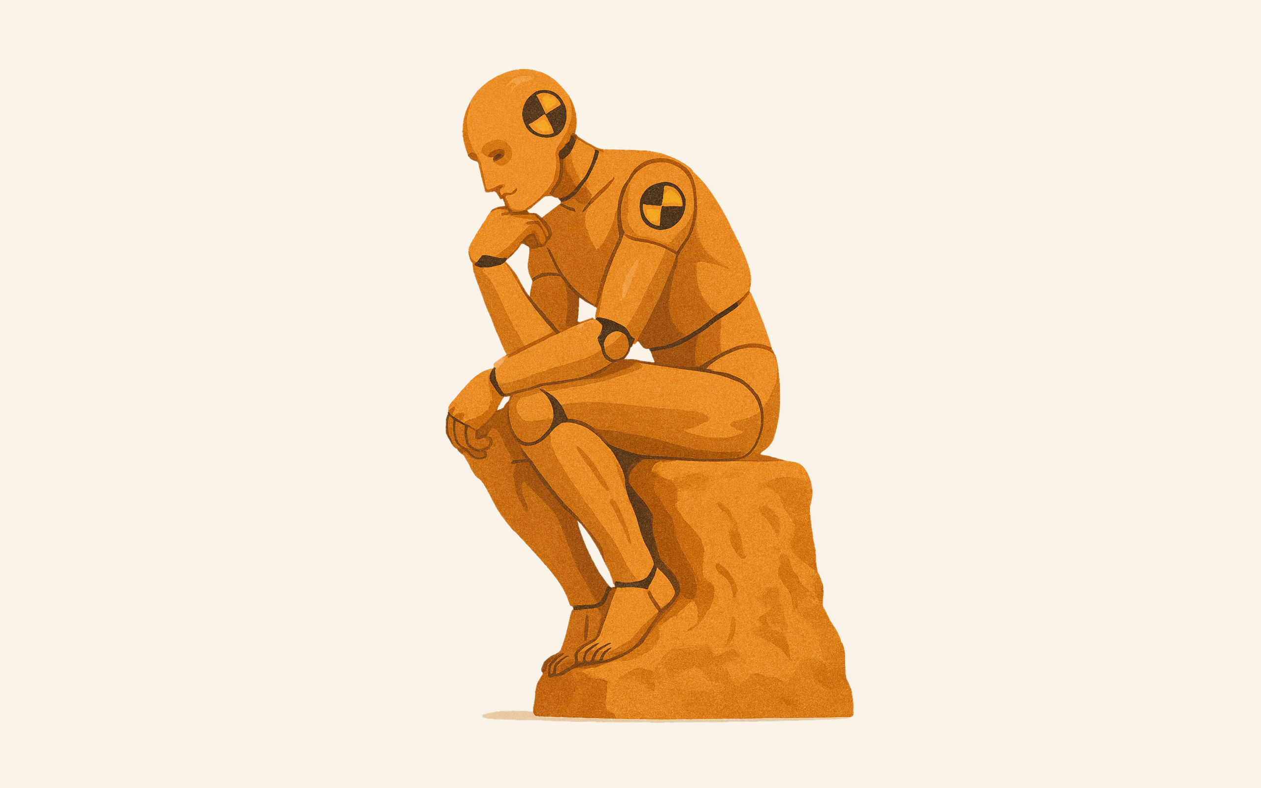 Cover image: Created by michael.gr using ChatGPT, and then retouched to remove imperfections. The prompt used was: "Please give me an image of a crash test dummy in the style of The Thinker, by Auguste Rodin."